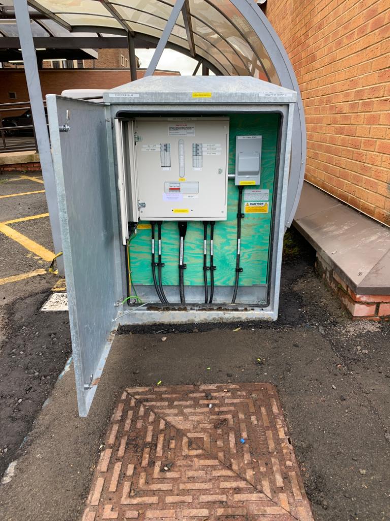 Feeder pillar installation for two twin-7kw Alphen ChargePoint’s at Fire & Rescue Hamilton Glasgow.